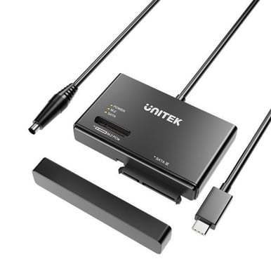 Unitek S1232A NVMe M.2 SSD Enclosure Adapter with 100cm Cable Supports M Key In Any Sizes - M.2 2.5 / 3.5 SATA Solid State Drives - Tool-Free - Plug-and-play