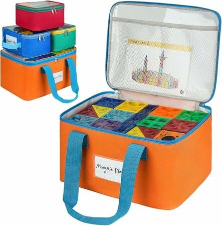 4 Packs Magnetic Tiles Storage Bags,Magnetic Tiles Storage Bin,Toy Organizer Case with Mesh Pocket and Tag Pocket for Building Tiles,Board Game,Puzzle
