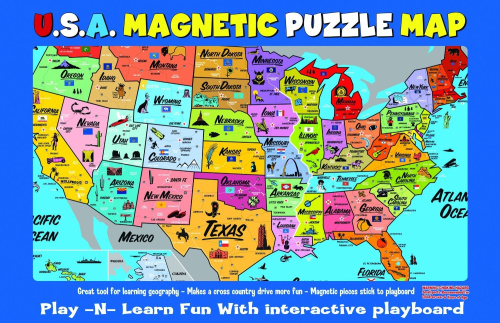 Ata-Boy Magnetic USA Map Play-n-Learn Puzzle Board