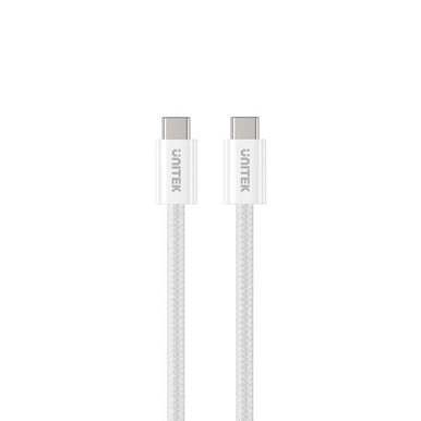 UNITEK 1M USB-C to USB-C Magnetic Cable - 100W PD Fast Charging, Tangle-free Design, Double Braided Nylon, USB 2.0 up to 480MBs - White (Product Code: UNITEK-1M-USB-C)