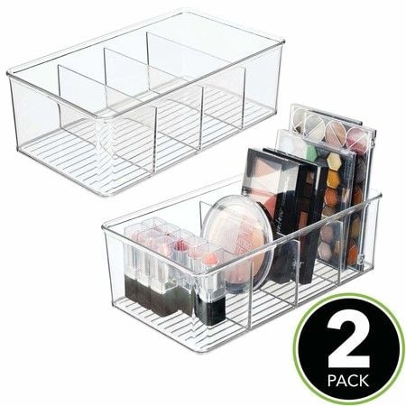 2pcs Kitchen Bathroom Makeup Organizers Storage Box with 4 Compartments for Makeup, Cabinet and Refrigerator More in Plastic