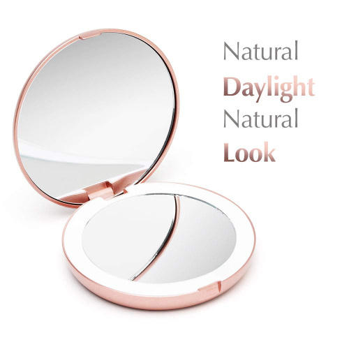 Fancii Lumi Rose Gold LED Compact Makeup Mirror (1X/10X Natural Daylight) – Travel Handbag Magnifying