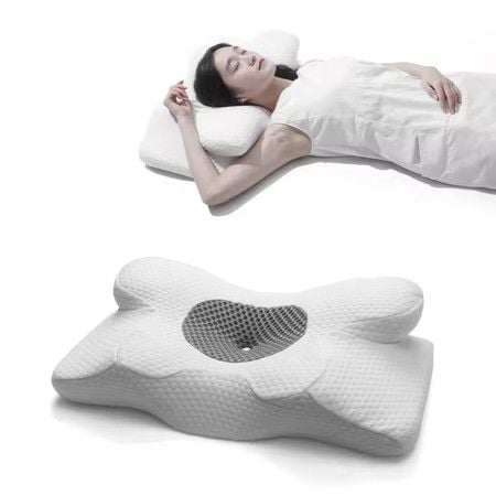 Cervical Ergonomic Butterfly-Shaped Memory Foam Pillow Breathable Mesh Fabric Ideal for Side Back Stomach Sleepers Neck Support