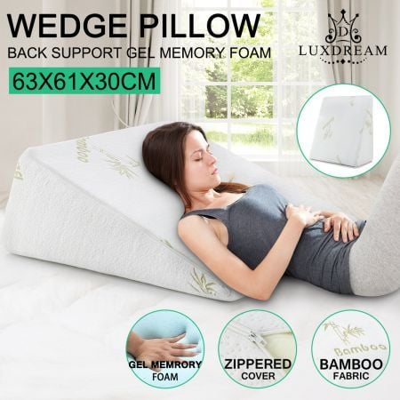 Cool Gel Wedge Pillow Memory Foam Back Support Cushion Antibacterial Luxdream