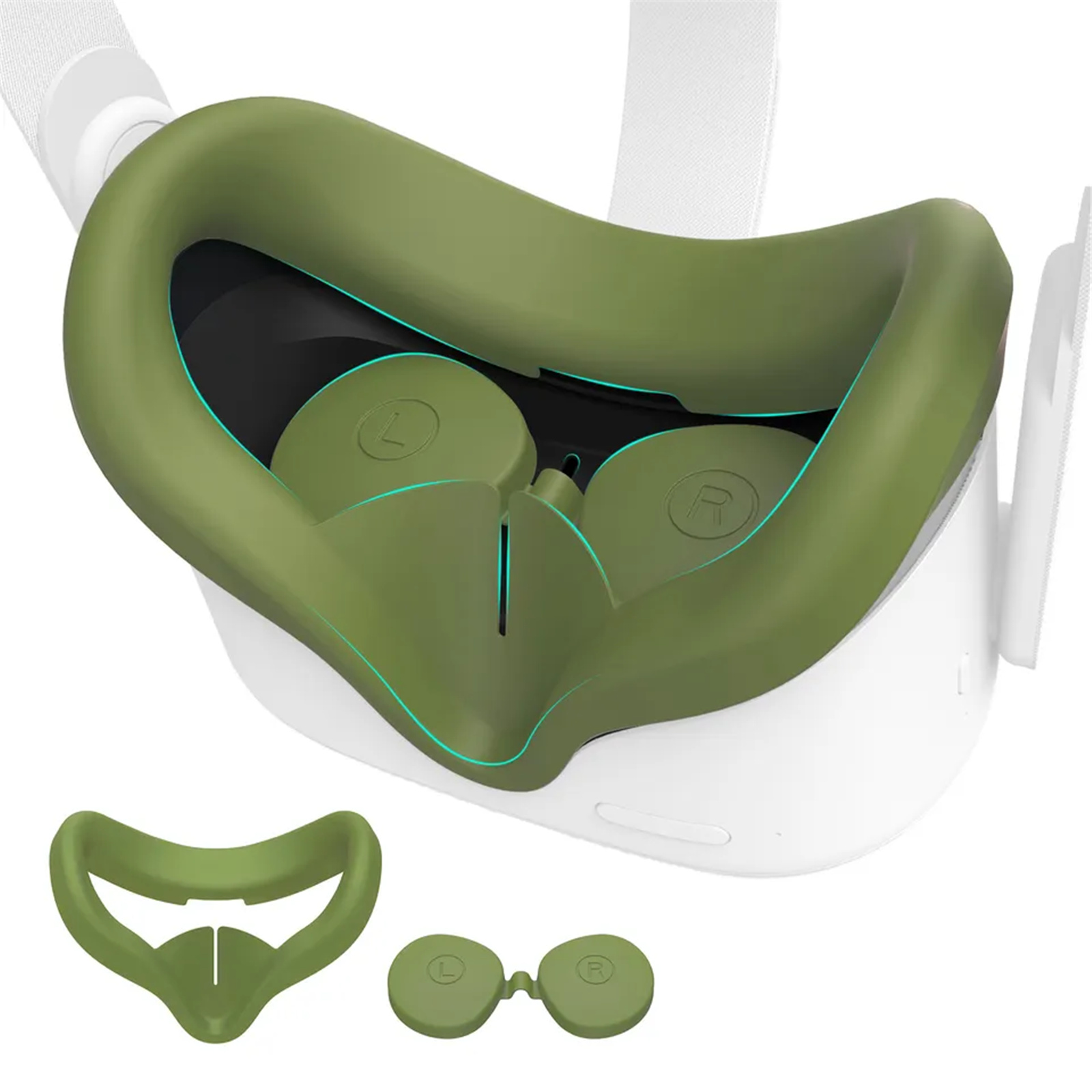 Kiwi Design For META Oculus Quest 2 Silicone Face Cover Pad Olive Green Colour with Lens Protector, Enhanced Support