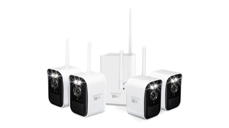 Swann MaxRanger Mini 4K Indoor/Outdoor Wireless Security Camera with Base Station - 4 Pack (White, 32GB MicroSD)