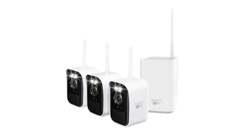 Swann MaxRanger Mini 4K Indoor/Outdoor Wireless Security Camera with Base Station - 3 Pack (White, 32GB MicroSD)