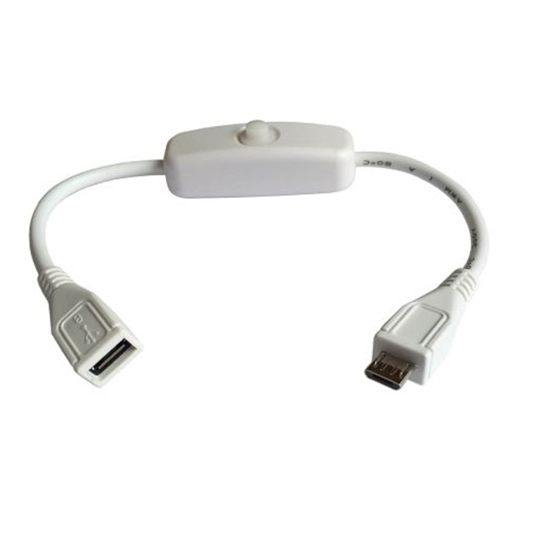 Retail Package White USB 2.0 Cable with Power Switch, Micro USB Type B Male to Micro USB Type B Female, 200mm Long, Inline Power Switch Cable for Raspberry Pi