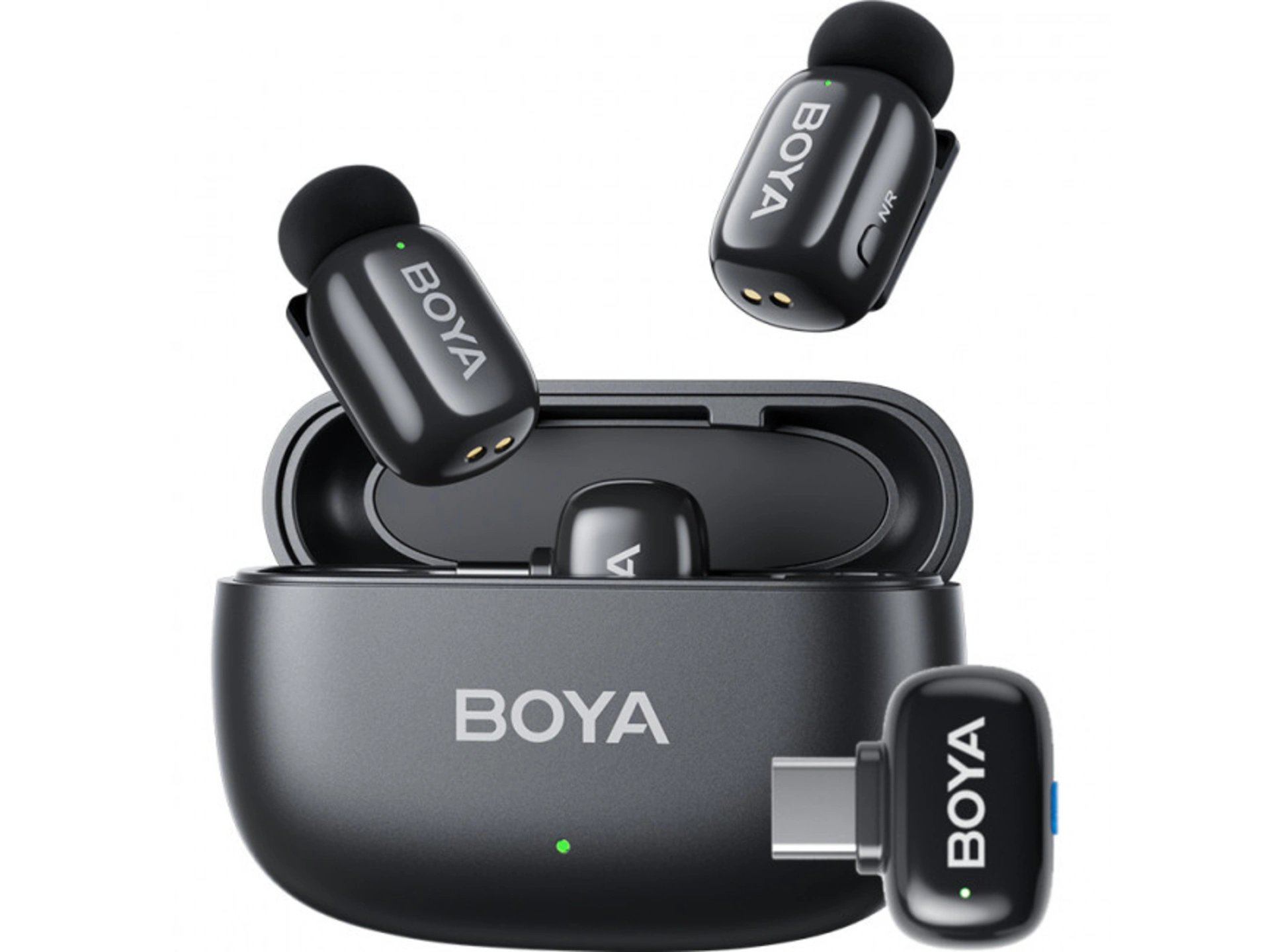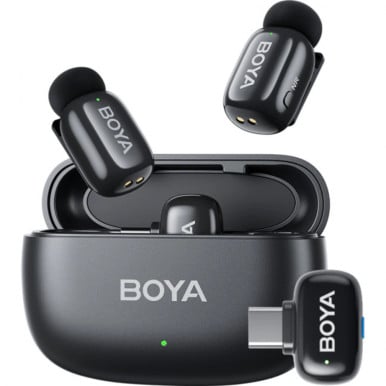 Boya mini-Black Type-C Ultracompact 2.4GHz Wireless Microphone System ( USB-C ) RX + 2 TX + Charging Case