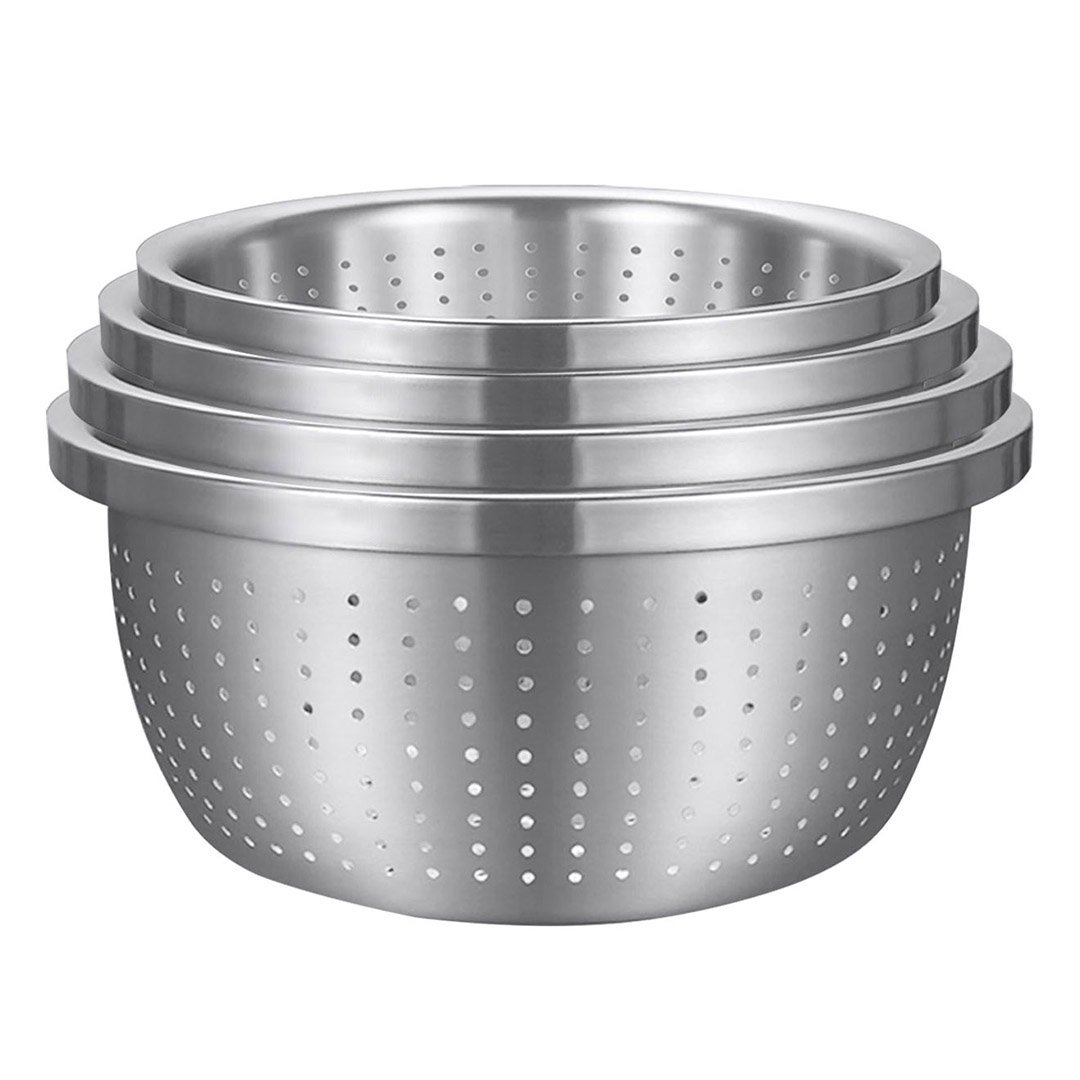 SOGA Stainless Steel Nesting Basin Colander Perforated Kitchen Sink Washing Bowl Metal Basket Strainer Set of 4 - Mixing Bowls - Bowl613
