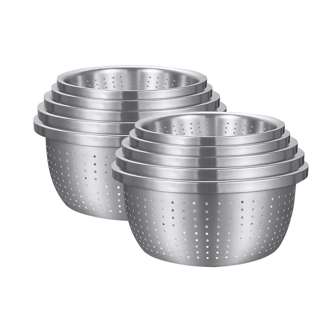 SOGA 2X Stainless Steel Nesting Basin Colander Perforated Kitchen Sink Washing Bowl Metal Basket Strainer Set of 5 - Mixing Bowls - Bowl621X2