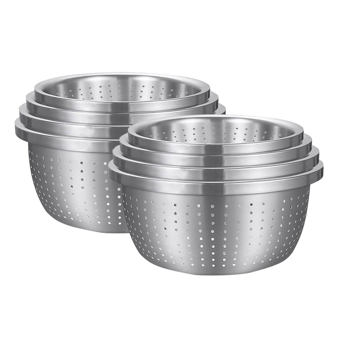 SOGA 2X Stainless Steel Nesting Basin Colander Perforated Kitchen Sink Washing Bowl Metal Basket Strainer Set of 4 - Mixing Bowls - Bowl613X2