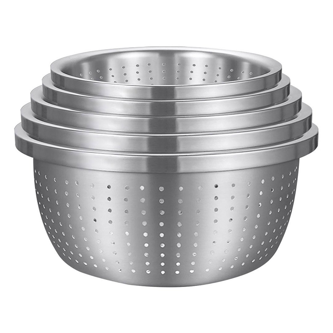 SOGA 2X Stainless Steel Nesting Basin Colander Perforated Kitchen Sink Washing Bowl Metal Basket Strainer Set of 5 - Mixing Bowls - Bowl624X2