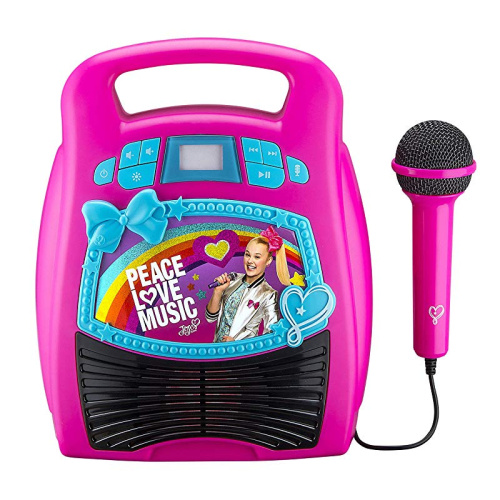 eKids JoJo Siwa Bluetooth Portable MP3 Karaoke Machine Player Light Show Store Hours of Music Built in Memory Sing Along Using Real Working Microphone USB Port Expand Content