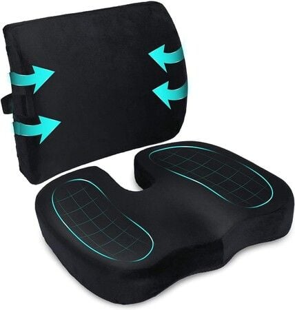 Coccyx Seat Cushion Lumbar Support Pillow Combo Memory Foam Back Support Set for Tailbone,Sciatica Posture Ergonomic Office Chair Car Cushion