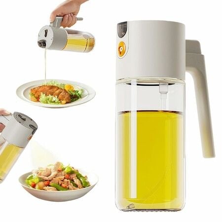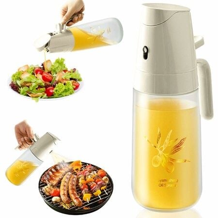 2 in 1 Oil Sprayer & Dispenser, 500ml Kitchen Spray Bottle for Olive Oil Cooking Frying Salad & Barbecue (Beige)