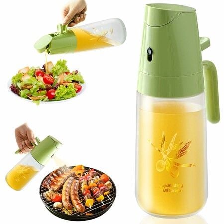 2 in 1 Oil Sprayer & Dispenser, 500ml Kitchen Spray Bottle for Olive Oil Cooking Frying Salad & Barbecue (Green)