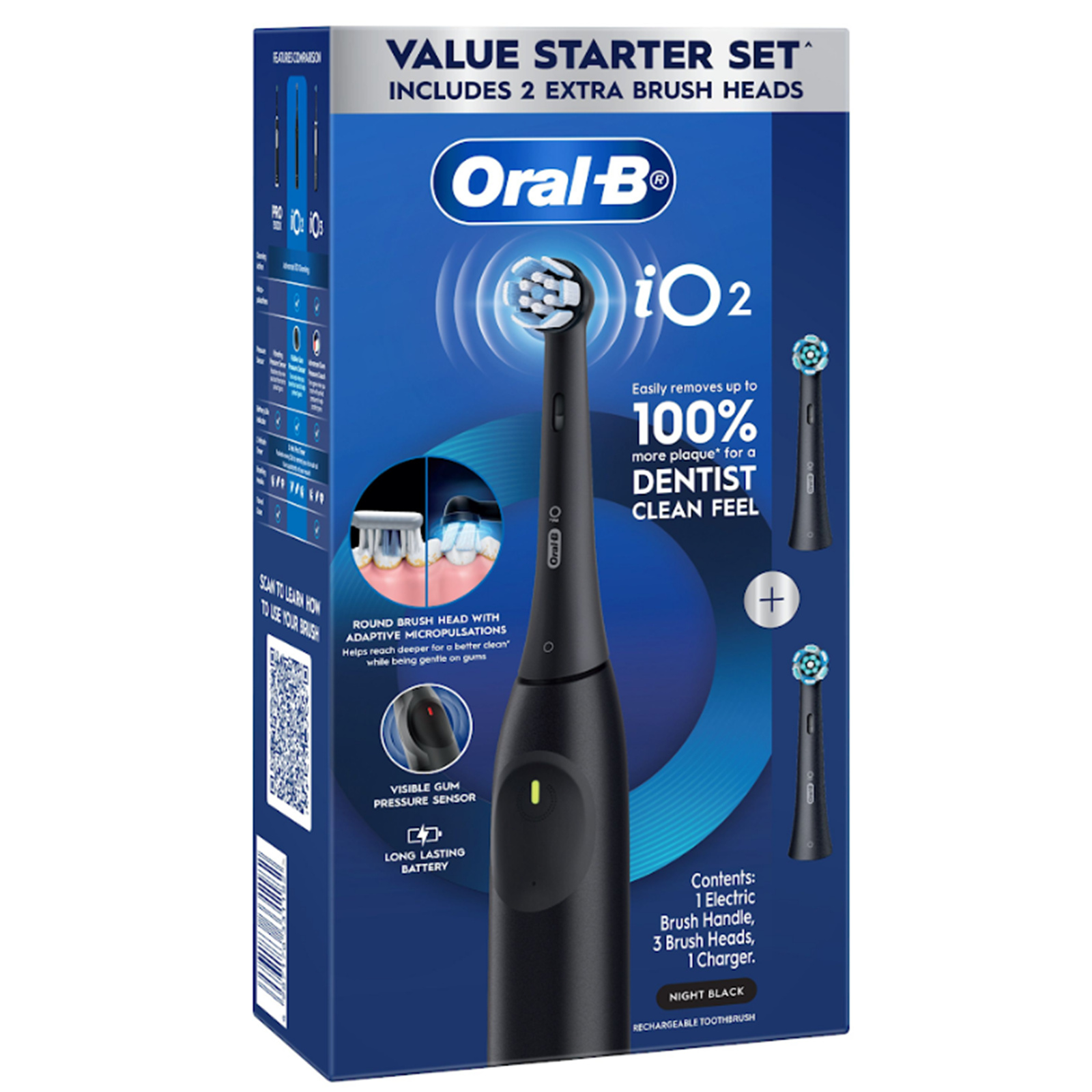 Oral-B iO Series 2 Electric Toothbrush Starter Set with charger and 3 Brush Heads - Black