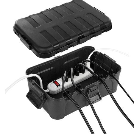 Outdoor Electrical Box 34 x 24 x 12 cm, IP54 Waterproof Extension Cord Cover Weatherproof, Protect Outlet, Plug, Socket, Timer, Power Strip, Black