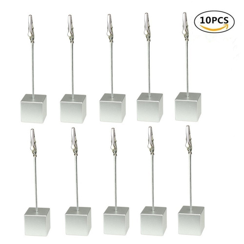 senover 10pcs Table Number Holder Name Place Card Memo Clip Stand Note Pictures Paper Menu (Silver)
