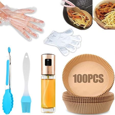 Air Fryer Paper Baking Set Baking Oil Absorbing Paper Oil Spray Bottle Oil Brush Food Clip Disposable Gloves