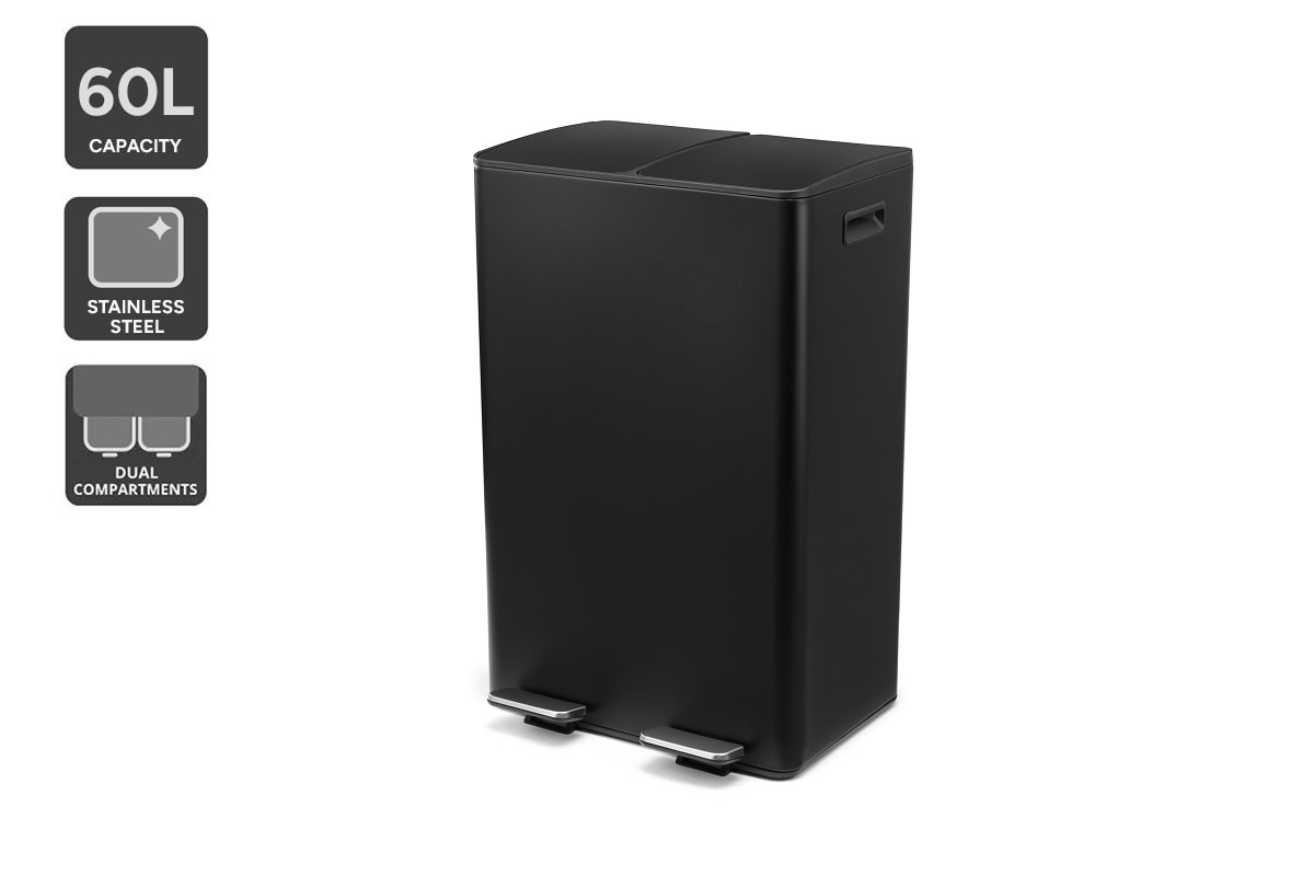 Ovela 60L Dual Compartment Pedal Rubbish Bin (Black)