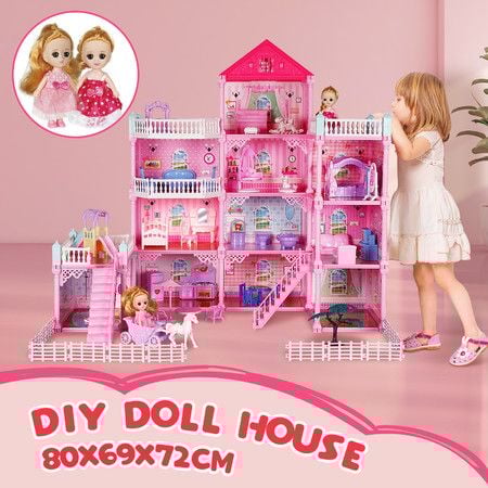 Girls Doll House Dream Land Cottage DIY Pretend Play Furniture Princess Pet Dolls Toys Set Children Roleplay Accessories Christmas Birthday Gift