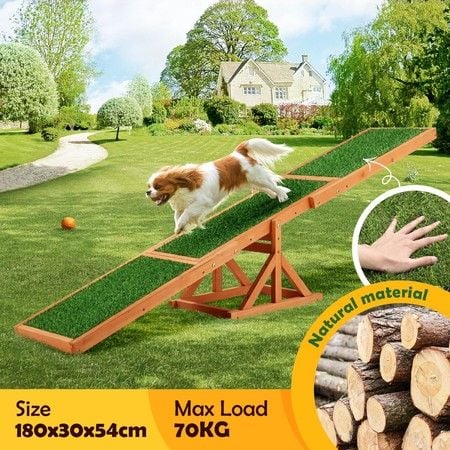 Petscene Pet Seesaw Dog Obedience Training Puppy Sports Agility Outdoor Play Exercise Equipment Teeter Totter Wooden Artificial Grass