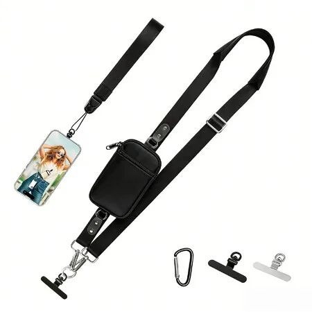Phone Lanyard Crossbody Strap Waterproof Nylon Wristlet Adjustable Wallet Shoulder Bag Replacement Belt Christmas Gift COL Black