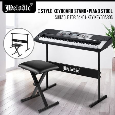 Melodic I Style Adjustable Keyboard Stand Folding Piano Stool Seat Chair Set