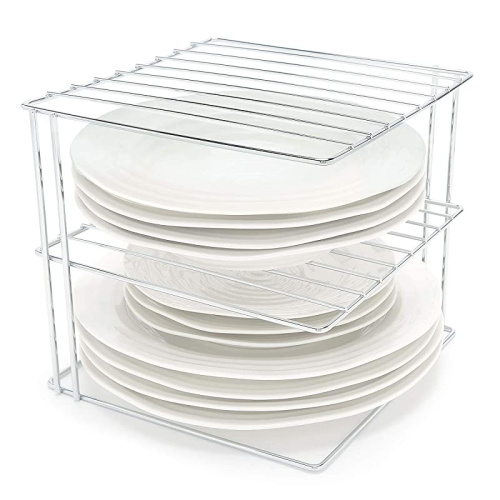 simplywire - Plate Rack Kitchen Cupboard Organiser 3 Tier Square Chrome