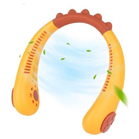 Portable Neck Fan Kids Bladeless Fan, USB Rechargeable Battery Operated Hanging Mini Fan 3 Speeds-Dinosaur ORANGE