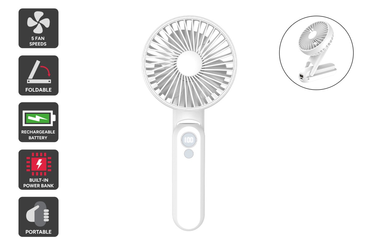 2-in-1 Portable Foldable Handheld Fan with Power Bank