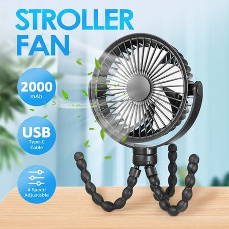 Portable Stroller Fan Desk Clip On USB Battery Powered 4 Speeds Cooling Rotatable Handheld Personal for Car Seat Bike Pram Crib Travel Outdoor