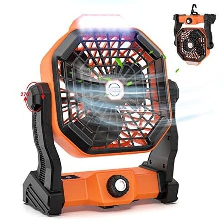 Portable Rechargeable Camping Fan with Light USB Powered 270° Rotation Battery Operated Tent Fan for Travel