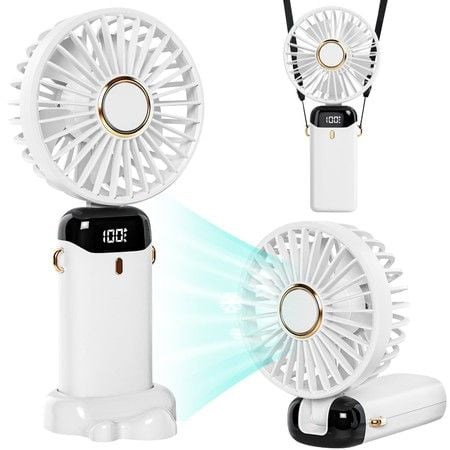 2024 Portable Fan 20000mAh 5-level Neck-Hanging Type-C Fast Charging Lightweight Mini 180 Foldable Makeup Fan Col.White