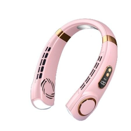 Safe Bladeless Portable Neck Hanging Fan with Long-lasting All-day Use 4000mAh battery, 5 Speed, Digital display, LED light, Type-C Fast Charge(Pink)