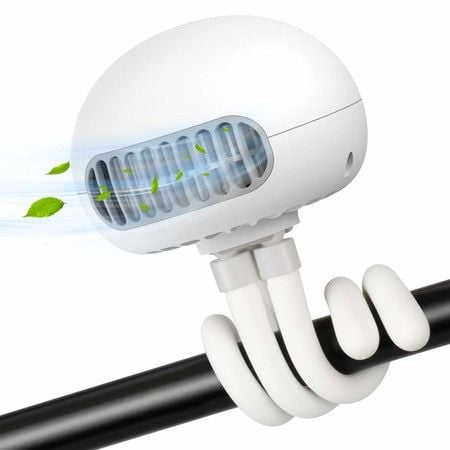 Portable Bladeless Fan, Mini Handheld Fan with Flexible Tripod on Stroller Fan, 3 Speeds, Rechargeable, for Stroller, Car Seat, Crib