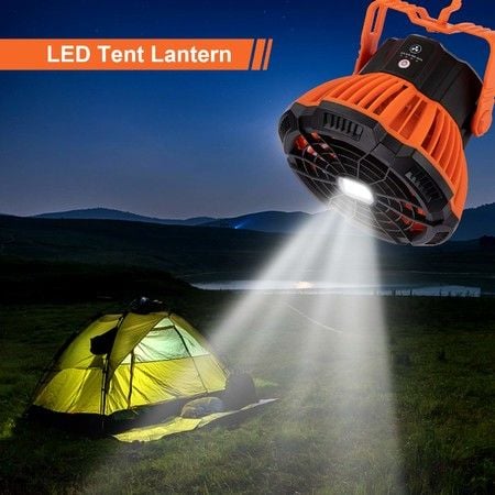 Waterproof Portable Camping Fan with LED Lantern: Rechargeable Fan with Hanging Hook and Magnet for Indoor and Outdoor Use