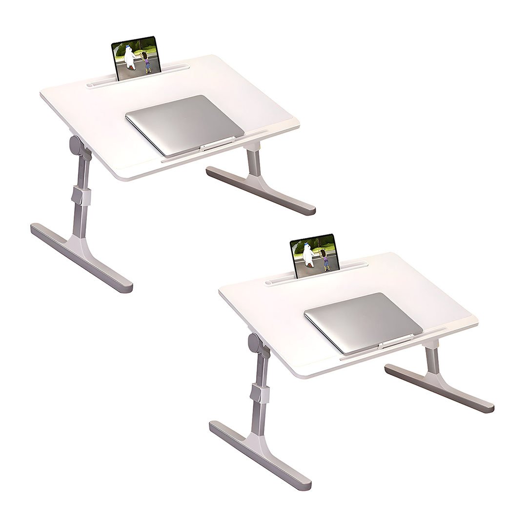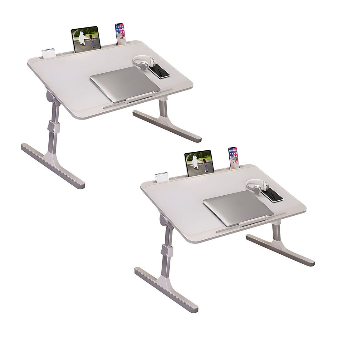 SOGA 2X 60X40cm White Small Laptop Bed Portable Foldable Study Table Adjustable - - BedTableA5X2