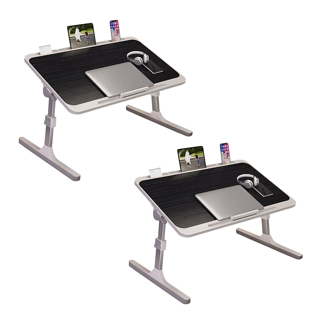 SOGA 2X Black Portable Bed Table Adjustable Foldable Bed Sofa Study Table Laptop Mini Desk with Notebook Stand Card Slot Holder Home Decor - - BedTableG41X2