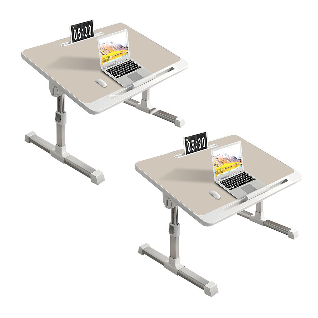 SOGA 2X Beige Portable Bed Table Adjustable Foldable Bed Sofa Study Table Laptop Mini Desk Breakfast Tray Home Decor - - BedTableA04X2