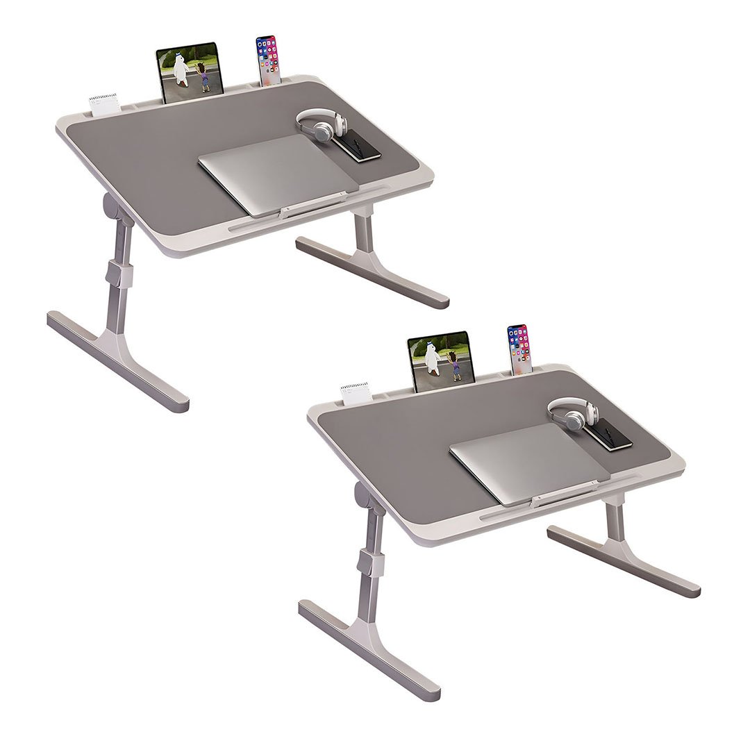 SOGA 2X 70X45cm Grey Small Laptop Bed Portable Foldable Study Table Adjustable - - BedTableA13X2