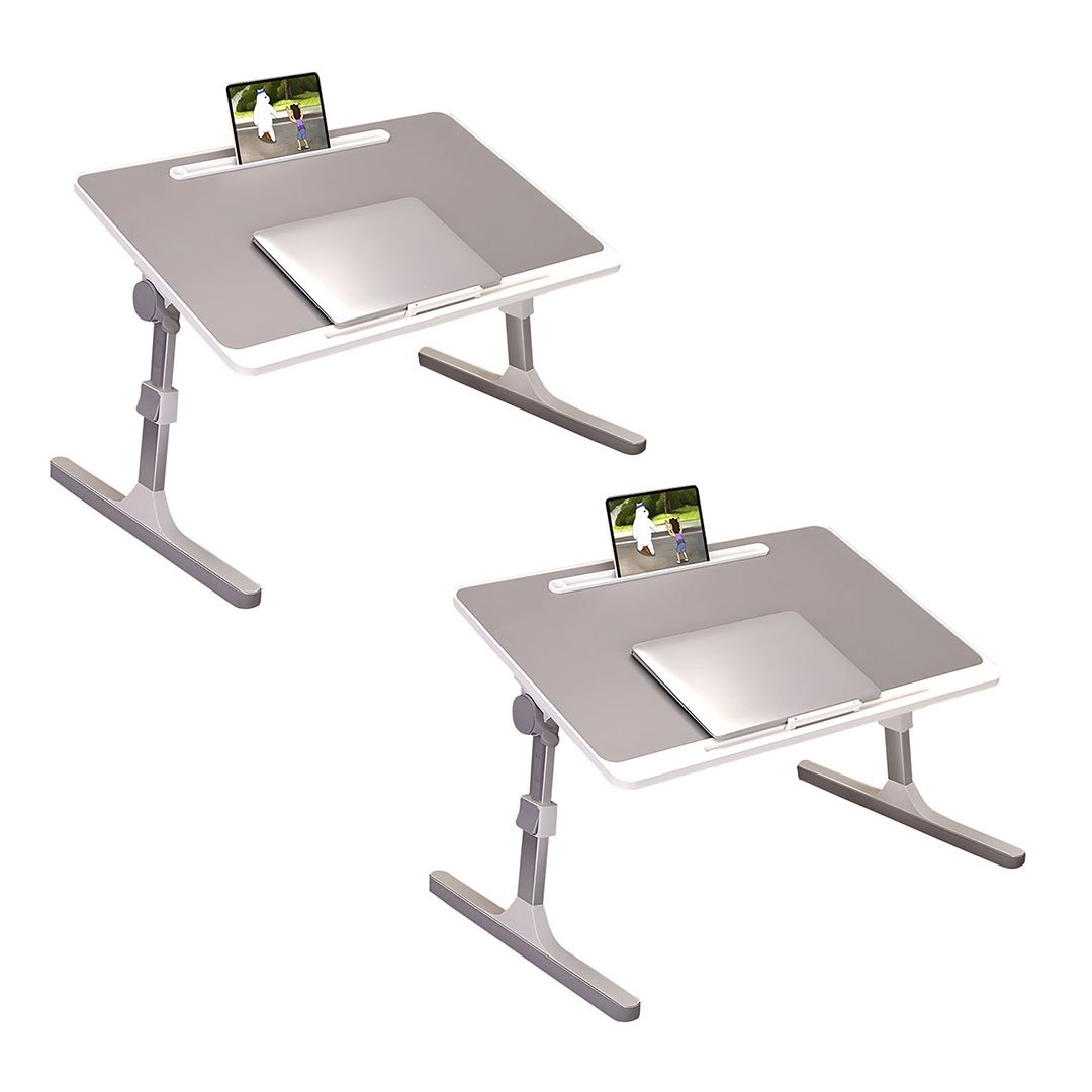 SOGA 2X 60X40cm Grey Small Laptop Bed Portable Foldable Study Table Adjustable - - BedTableA11X2