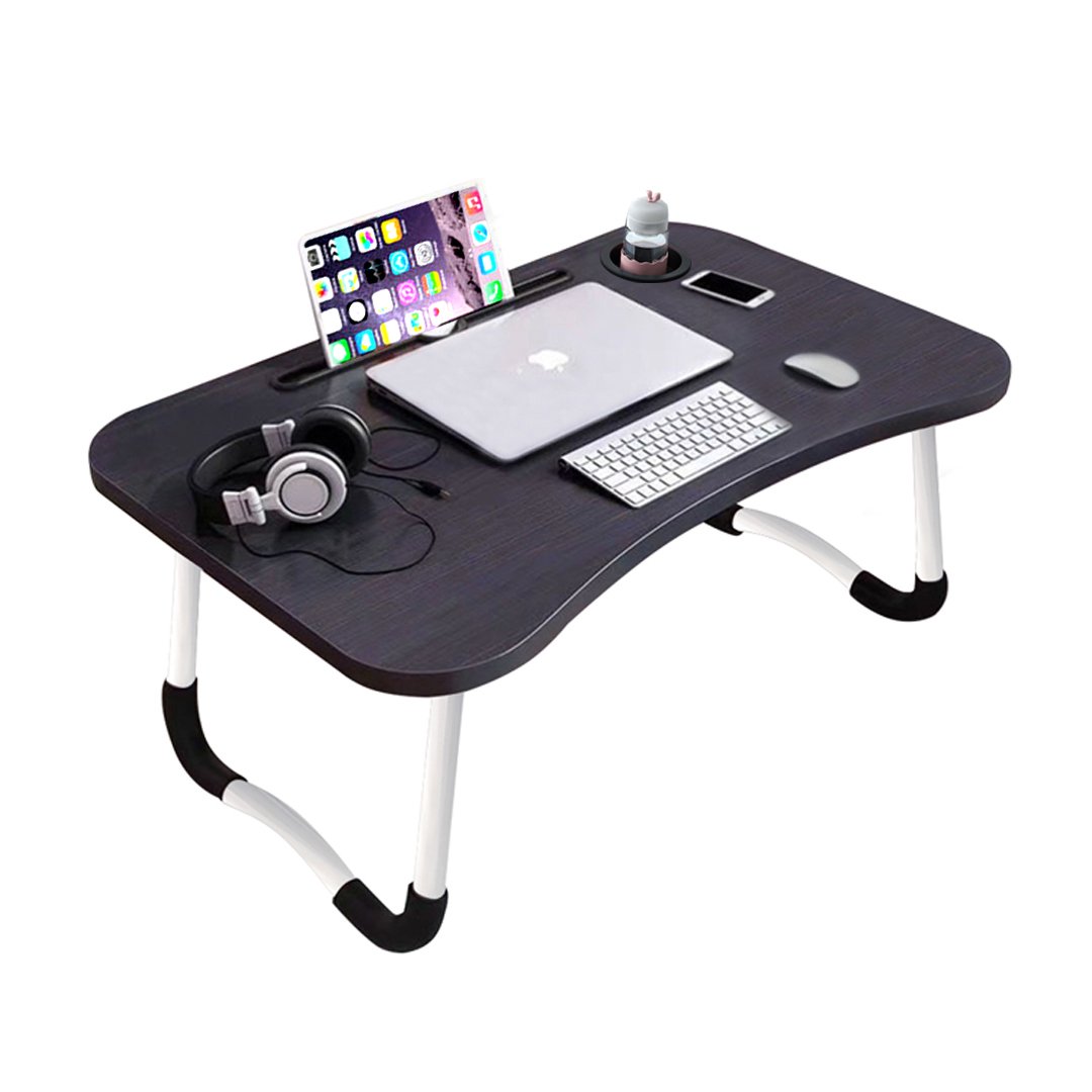 SOGA Black Portable Bed Table Adjustable Foldable Bed Sofa Study Table Laptop Mini Desk with Notebook Stand Cup Slot Home Decor - - BedTableH301