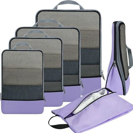 6 Set Compression Packing Cubes for Suitcases, Space Saving Packing Cubes for Travel, Durable Suitcase Organizer Bags, Purple