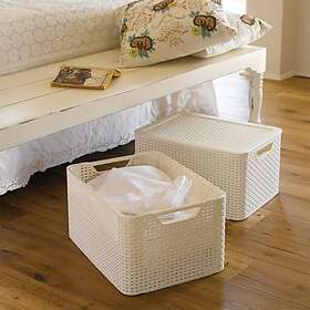 Curver Rattan Style Storage Basket with Lid Cream L