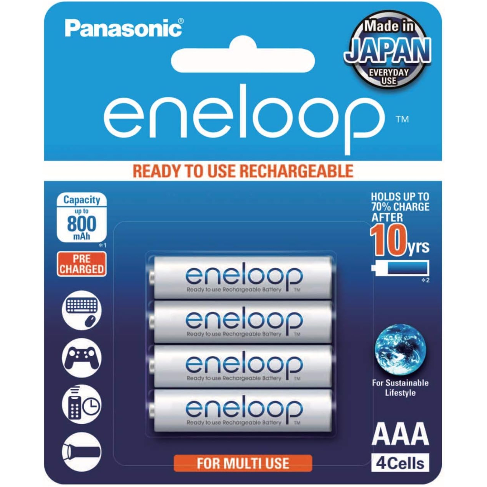 10, NiMH, AAA (LR03/R3), Rechargeable batteries