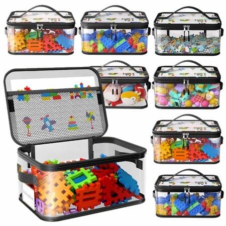 6 Packs Large Toy Storage Bags Reusable Clear PVC Board Game Storage,Travel Waterproof Organizer Bags with Zipper for Building Blocks,Puzzle,Books