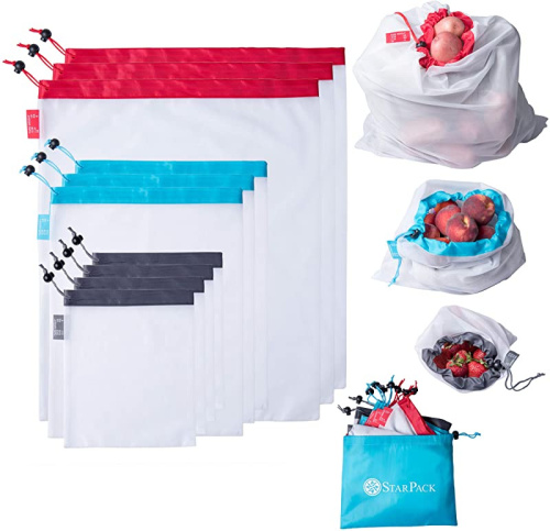StarPack Home Reusable Produce Bags - Zero Waste Mesh for Eco Friendly Grocery Shopping, Includes Storage Pouch